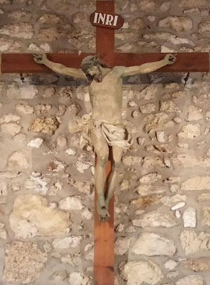 En cuanto a la bella talla del crucificado, no está muy claro si es la que remataba el retablo, aunque su tamaño, algo mayor que el natural, pudiera indicarnos que está esculpido para verlo a bastante altura; es claramente romanista y de la escuela castellana y por sus características anatómicas y estéticas hay autores que lo atribuyen a Juan de Juni.