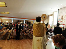 Este año por motivo de la pandemia no ha sido posible hacer la procesión en la calle, sin embargo si habido procesión por el interior de la iglesia al final de la Misa con la bendición del Santísimo a todos los presentes.