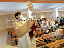 Con motivo del coronavirus Juan Carlos el párroco de Santa Catalina ha invitado a sus feligreses que enviasen una foto de cada familia para que ocupase los bancos de la capilla y pudiesen estar cerca del señor para que la celebración diaria de la eucaristía, pudiese iluminar espiritualmente a cada uno de los feligreses y pedir por su salud y por sus intenciones.