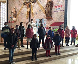 También los niños de primera comunión hicieron con la actividad de catequesis un belén de papel que llevaron a la iglesia y le presentaron ante el misterio que allí había.
