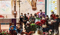 Se invitó a familias de 18 niños bautizados en el año 2019, pudiendo acudir 5 familias, de ellas y Manuela, Paola, Carmen, Ines y Abril rebieron la bendición de Dios y se les ofreció a la Virgen Maria al final de la misa para que les cuide y a sus padres no dejen de educarles en la Fe.
