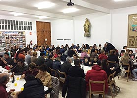Comenzando como siempre con la misa, adoración y después en el salón, cena, bingo y música.
