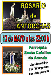 Así que este jueves a las 10 de la noche tendremos el rosario en el interior de la iglesia y una sencilla procesión con antorchas con la imagen de la Virgen he iremos cantando.