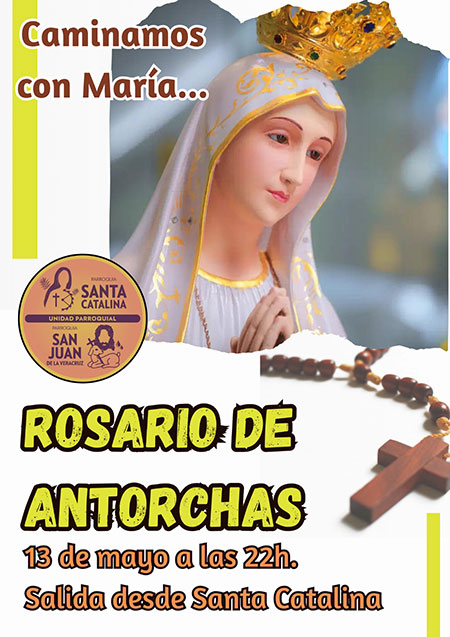 El sábado día 13 de mayo día de la Virgen de Fátima a las 10:00 de la noche desde la parroquia de Santa Catalina, tuvo lugar como cada año lo vamos haciendo la procesión del rosario de las antorchas por las calles todo el barrio de Santa Catalina.