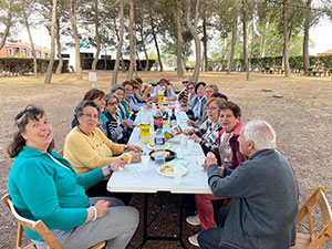 En torno a las 15:00 horas pusimos unas mesas plegables y sillas donde cada uno llevó su comida y compartimos ese momento tan maravilloso, luego tertulia y partida de cartas hizo que el ambiente que fuese muy cordial.