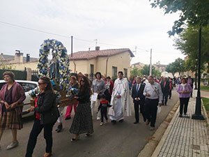 Y el domingo fue el día elegido para celebrar la fiesta de la virgen a las 12:00 de la mañana. Tuvo lugar la misa solemne con gran afluencia, y por la tarde a las 6:30 horas tuvo lugar el último día de novena y posteriormente la procesión por todo el pueblo, donde se subastan la bandera, el estandarte y los cuatro banzos de la virgen María, por tres veces, una al comienzo otra en la plaza del pueblo y otra de regreso.
