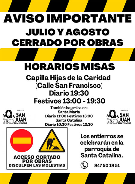 Las celebraciones y las misas serán en la capilla de las hijas de la caridad en la calle San Francisco con los mismos horarios y los entierros se celebrarán en la iglesia de Santa Catalina.