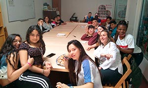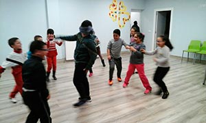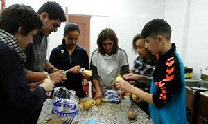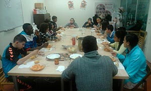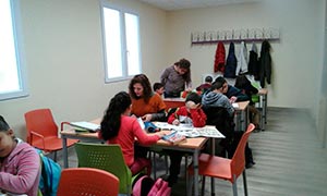 De lunes a jueves y en horario de 16h a 19:30h realiza actividades de Apoyo Escolar, Ocio y Acompañamiento Personal y Familiar a un grupo de unos 40 chavales.